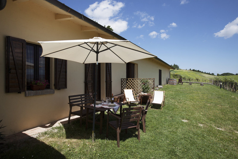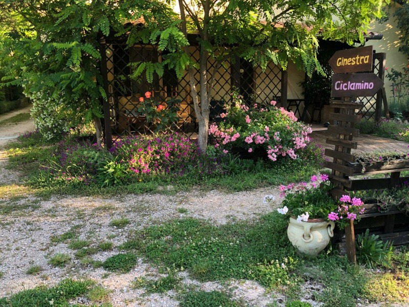 L’ agriturismo, aperto da Aprile a Settembre, è composto dalla struttura principale con gli appartamenti, un’ampia area verde, piscina panoramica e bosco.