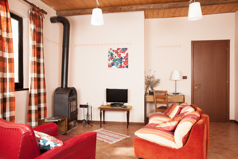 E’ composto da una camera da letto matrimoniale con bagno privato, una camera doppia, ingresso con letto, secondo bagno ed ampio salotto/cucina con camino. L’appartamento ha uno spazio esterno dedicato arredato con tavolo da pranzo esterno e sedie sdraio per rilassarsi e prendere il sole.Può ospitare fino a cinque persone, di cui una nel letto posto all’ingresso. Ideale per famiglie numerose con 3 figli o per due coppie di amici.