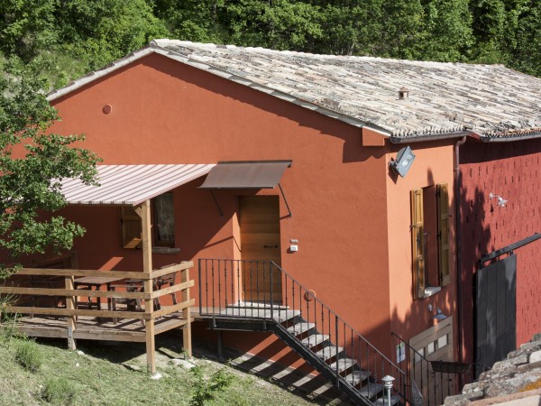 Agriturismo con appartamenti, sulle colline della provincia di Pesaro e Urbino, nelle Marche. Struttura che fa parte di un azienda agricola che coltiva cereali, foraggi e tartufo.