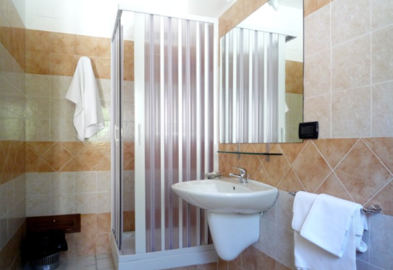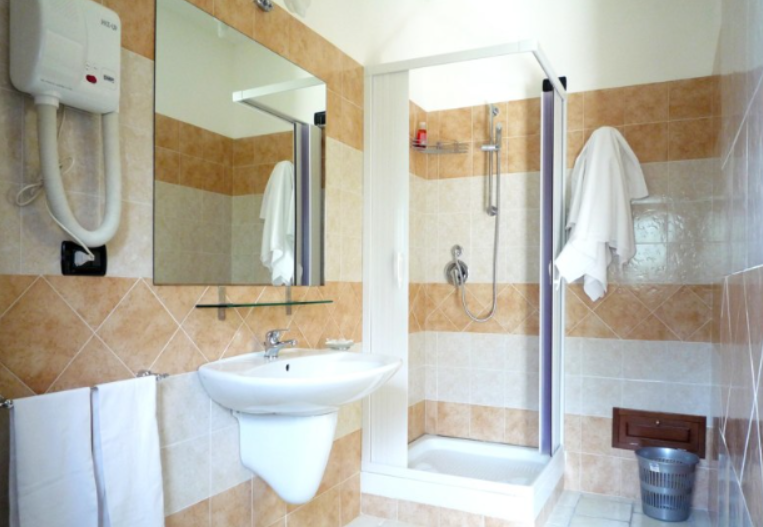 Il bagno è provvisto di doccia, asciugacapelli, accappatoi e linea cortesia completa.